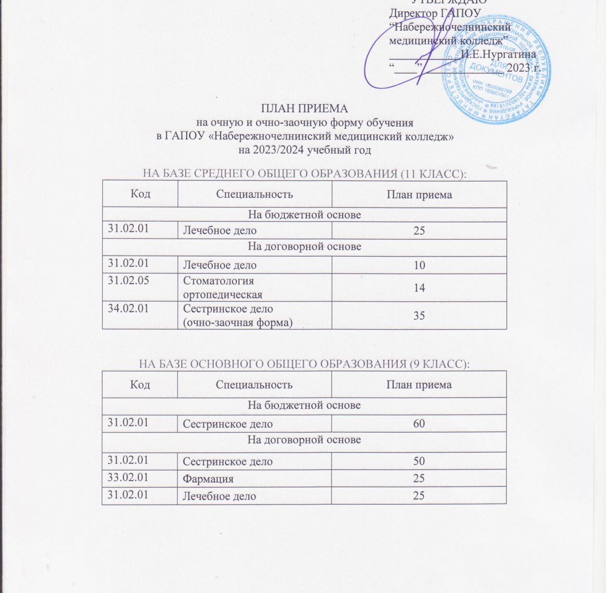 План приема на 2023-2024 учебный год