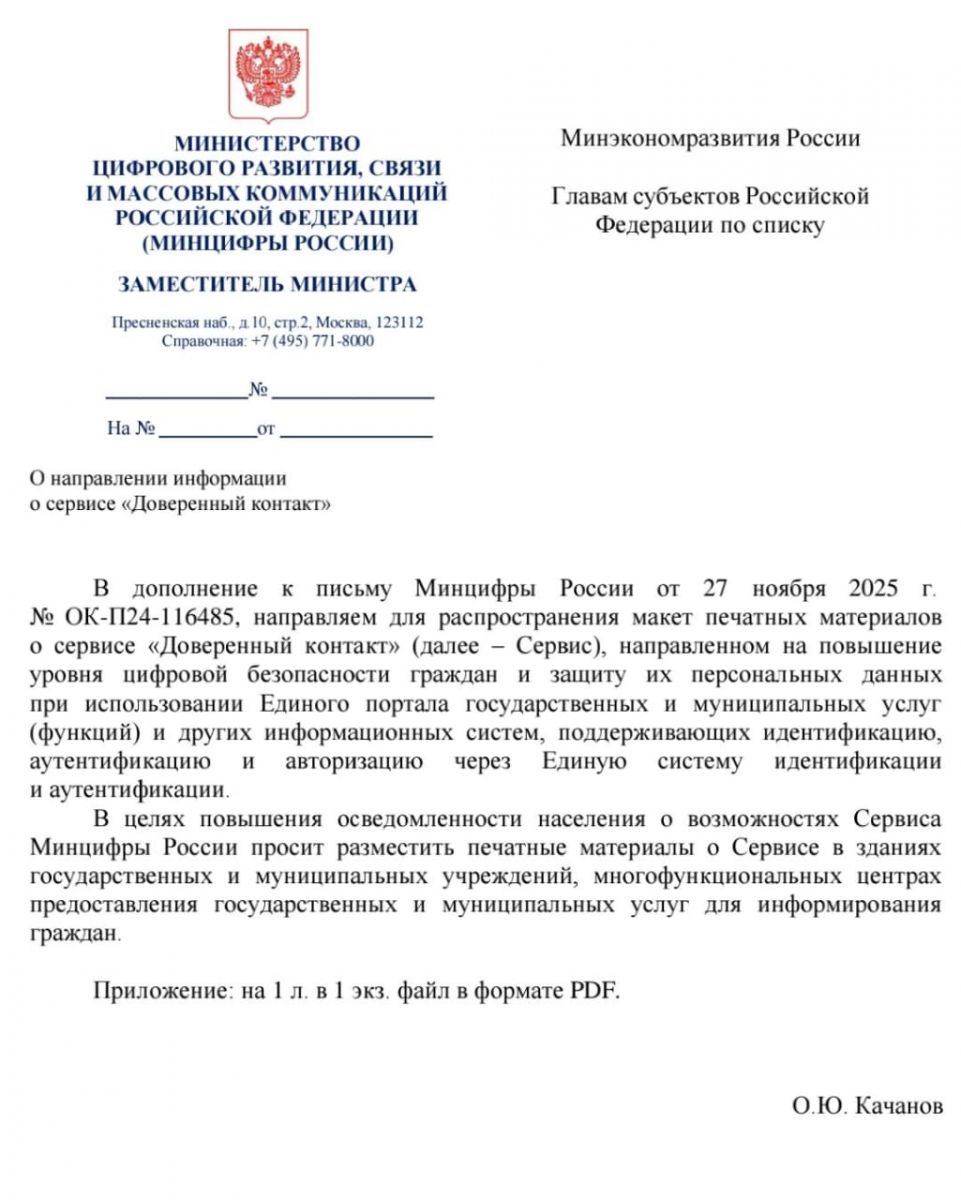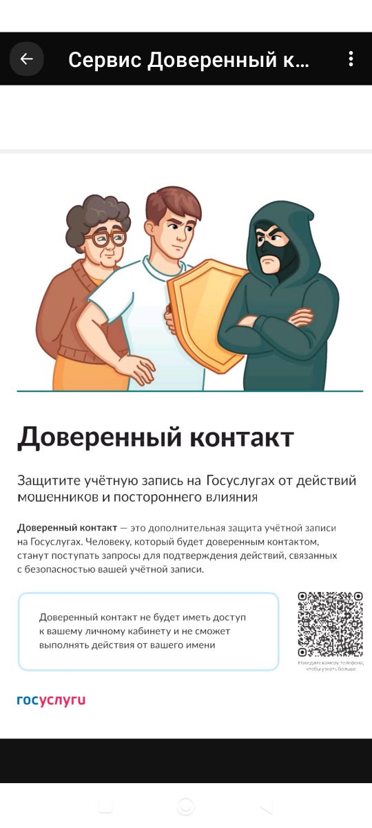 Сервис "Доверенный контакт" направлен на повышение уровня цифровой безопасности граждан и защиту персональных данных при использовании Единого портала государственных и муниципальных услуг и других информационных систем.