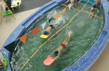 В саду прошел зональный семинар для инструкторов по плаванию , на котором присутствовали гости из Елабуги , Нижнекамска. Инструктор по плаванию провела соревнования между командами подготовительных групп ДОУ 77 и ДОУ 71.