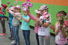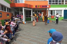 Педагоги провели замечательное развлечение на улице. Создали настоящий веселый праздник. Были игры, песни, танцы, приходили сказочные герои, в конце праздника дети рисовали на асфальте цветными мелками рисунки и пускали мыльные пузыри.