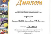 Поздравляем команду МАДОУ №77 « Теремок», занявшую почетное 4 место в Спартакиаде среди работников образовательных учреждений города Набережные Челны в 2014-2015 года.