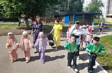 В нашем детском саду прошёл долгожданный национальный татарский праздник “Сабантуй”. К этому чудесному празднику присоединились дети всех групп. Праздник открыли стихами и песней вместе со сказочными героями: Ходжа Насреддин и Лето. Дети познакомились с татарскими народными играми: "Прыжки в мешках", бег с яйцом , скачки на лошадях “Наездники”. Все игры сопровождались задорной музыкой. Детей порадовало участие в веселых играх и эстафетах. Было здорово, интересно, зажигательно.