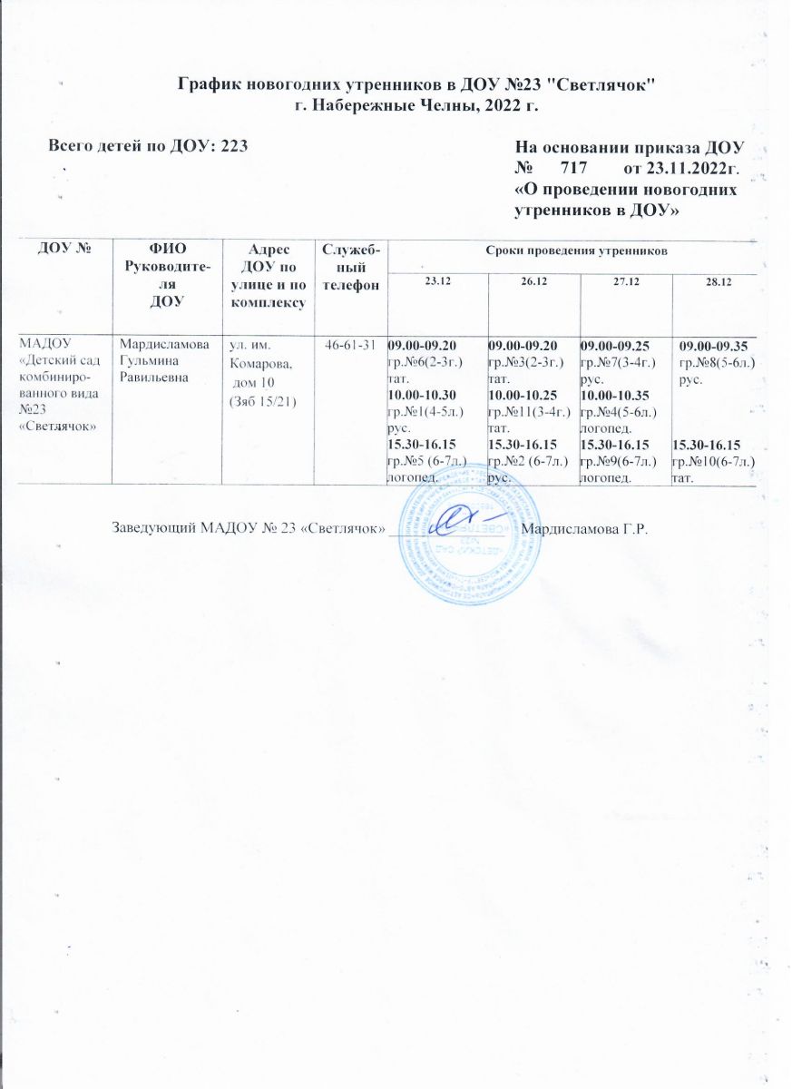 Расписание утренников 20.12.2022
