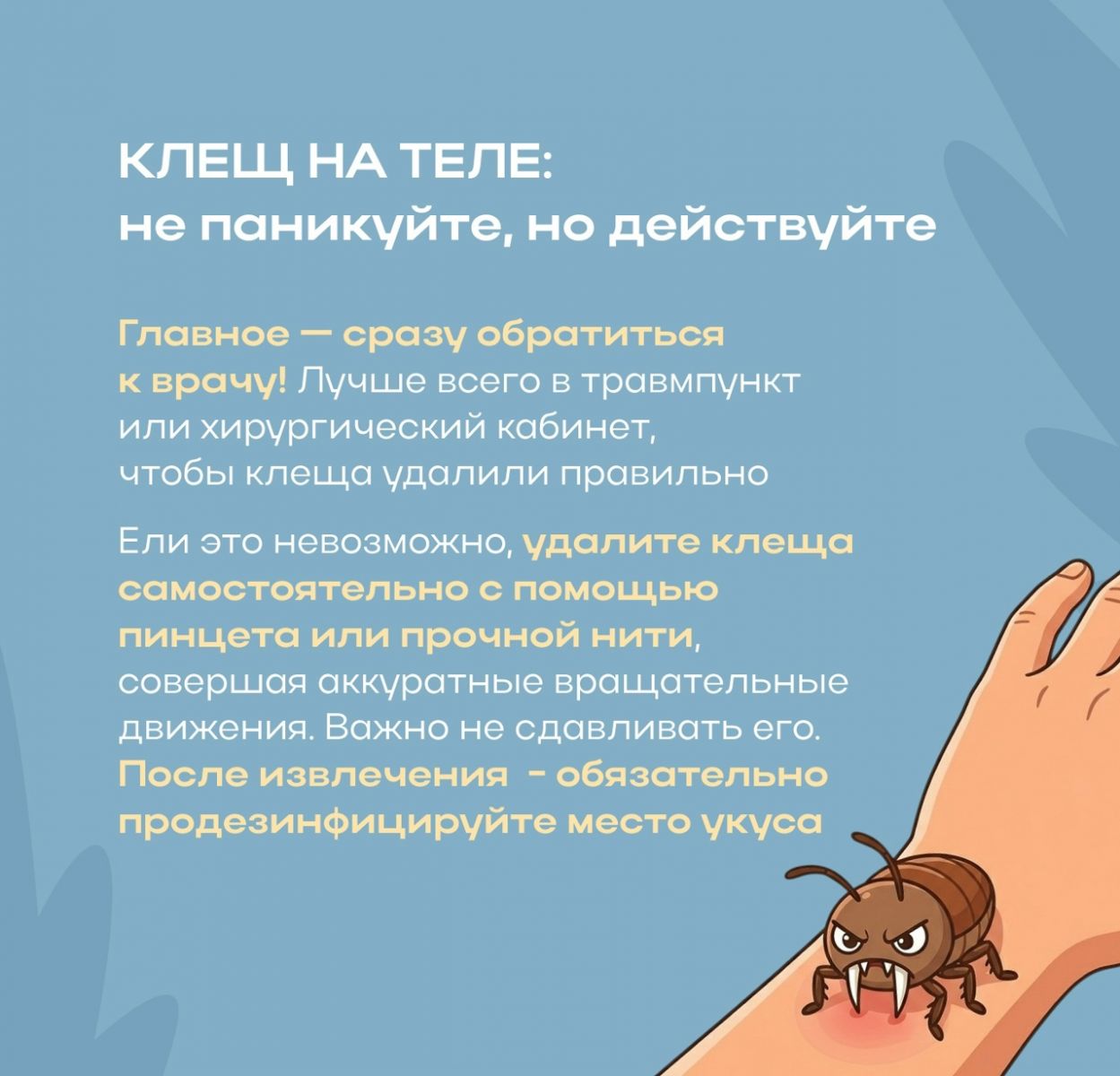 что делать, если вы обнаружили клеща на себе или ребёнкеСохраните и поделитесь с близкими