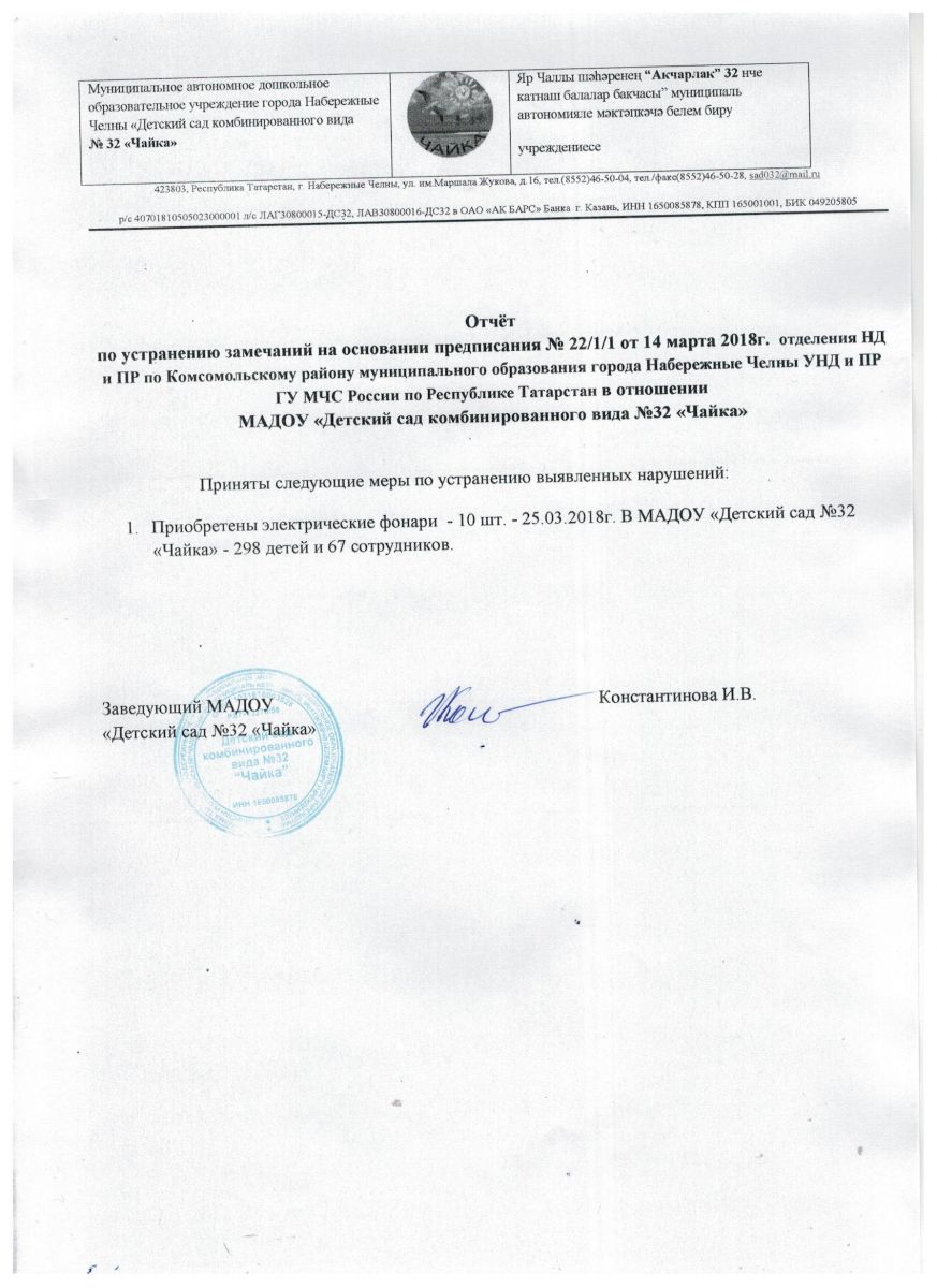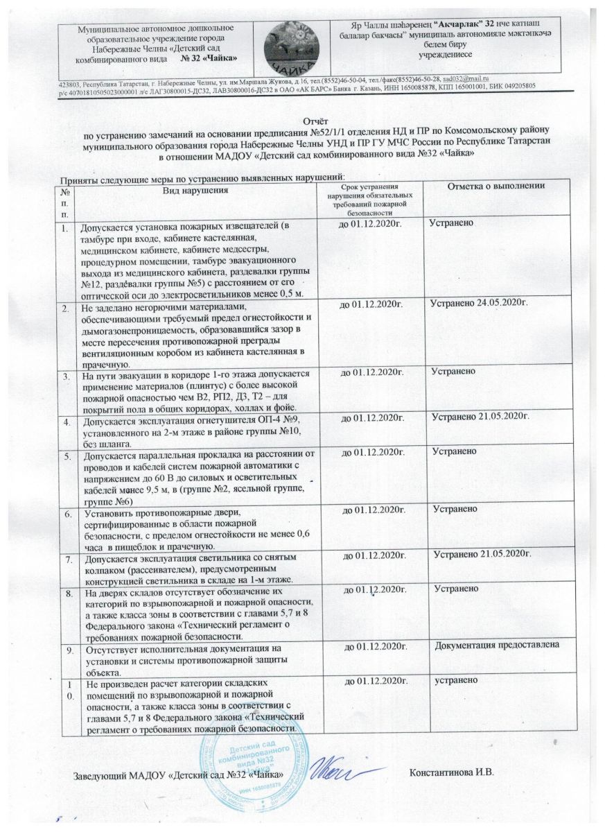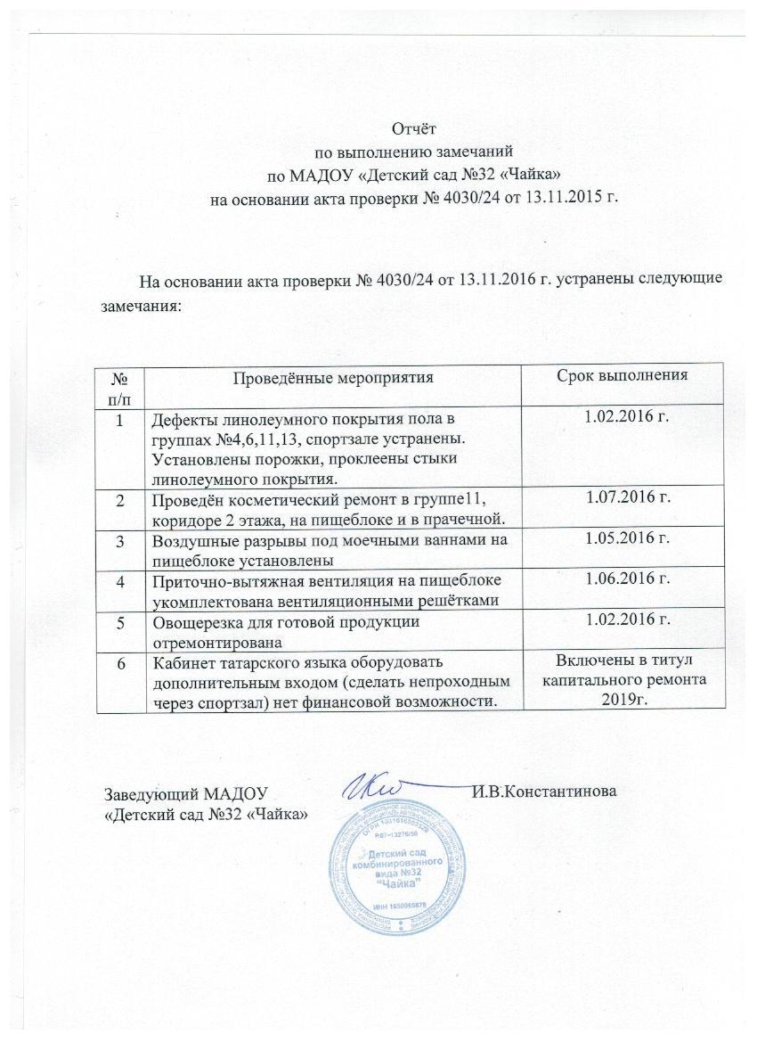 Отчёт об устранении нарушений от 8 .09.2017г