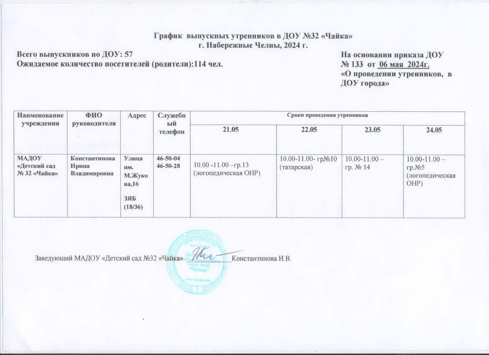 | Короткое название: | МАДОУ «Детский сад комбинированного вида №32 «Чайка» |