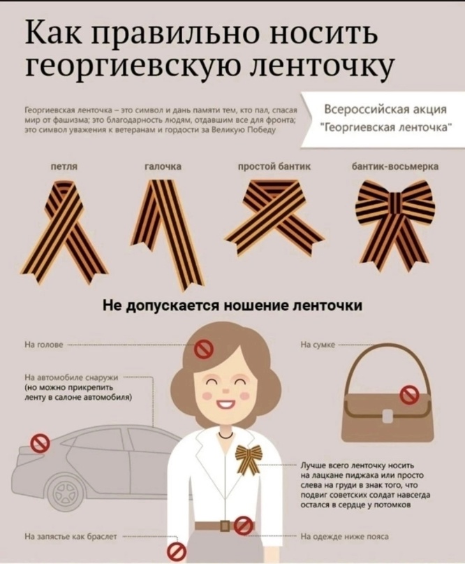В преддверии Великого Дня Победы хотим напомнить правила ношения Георгиевской ленты