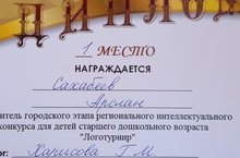 Поздравляем наших победителей в городском этапе регионального интеллектуального конкурса среди детей старшего дошкольного возраста "Логотурнир". Ребята большие молодцы! Желаем успехов