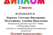 Поздравляем наших воспитателей Коржеву Светлану Викторовну и Мухутдинову Альбину Николаевну за 2 место в зональном конкурсе методических разработок "Будущий первоклассник"