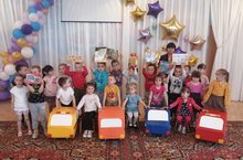 Нас пришла поздравить представитель отдела пропаганды ГИБДД - Уйбекова Ляйсан Вакиловна - ведущий специалист ИК при ГИБДД в отделе пропаганды. За победу в городском конкурсе "Зелёный огонек" детский сад поощрили подарками: мягкии модулями машин и дидактическими играми. Дети очень рады!