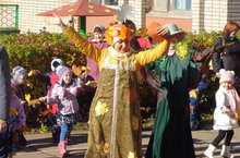 В солнечный день в детском саду прошли осенние встречи с лесными жителями.Кикимора, Соловей - разбойник и Леший помогли Осени найти осенние листочки с волшебными словами.При помощи которых открыли загадочный сундук, где лежали угощения для детей.Праздник прошёл эмоционально.Дети пели, танцевали, играли в коммуникативные игры вместе с родителями.