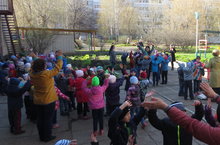 Ежедневная утренняя гимнастика на свежем воздухе (при хорошей погоде) воспитаников, родителей и педагогов ДОУ.