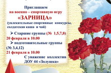 Приглашаем пап и дедушек на военно – спортивную игру «ЗАРНИЦА» 15.02.2019
