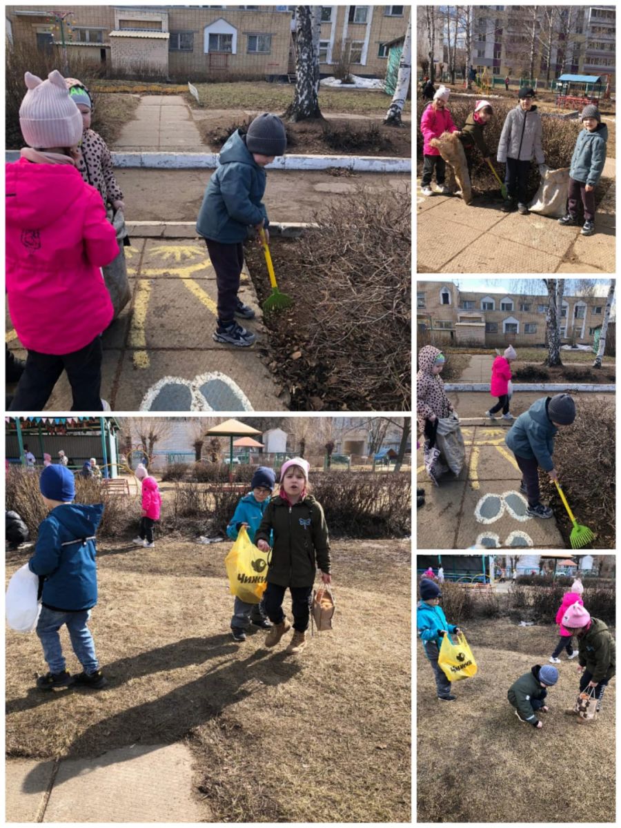 Сотрудники, воспитанники и родители вышли на улицу с одной целью – сделать детский сад ещё красивее, уютнее и чище! Все отлично потрудились, продуктивно и душевно: быстро убрали территорию детского сада от мусора и сухих листьев, привели в порядок клумбы. Не оставили без внимания и ближайшие к саду территории .