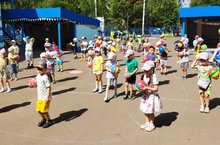 6 июля в нашем детском саду прошел праздник, посвященный Дню Семьи, Любви и Верности. В нем приняли участие дети средней, старшей и подготовительной группы. С самого утра на улице звучала музыка. Площадка, где проходят все праздники с детьми летом, была украшена шарами, флажками и цветами.