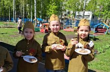 Главным сюрпризом для всех стала настоящая полевая кухня, развернутая прямо на улице. Аромат солдатской каши, приготовленной по традиционному рецепту, перенесли всех в атмосферу военных лет. С большим удовольствием все пробовали кашу, ощущая себя частью большой и дружной семьи. В рамках праздничной программы, прозвучали песни военных лет, дети читали стихи о войне и мире.