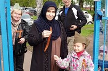 Так же в саду провели акции ««Георгиевская ленточка в каждые руки», дети старших подготовительных групп совместно с Абдульминовой Т.Н., Колматаевой А.С., воспитателями Степановой Н.Х., Кунафиной Л.Р, Фатхуллиной Л.Р., Браковенко Н.Л., Порада А.В, Зарифуллиной Л.М., председатель ППО Нугумановой Р.Ф. раздавали прохожим Георгиевскую ленту, как дань светлой памяти, уважения ветеранам, благодаря которым была одержана Великая Победа.