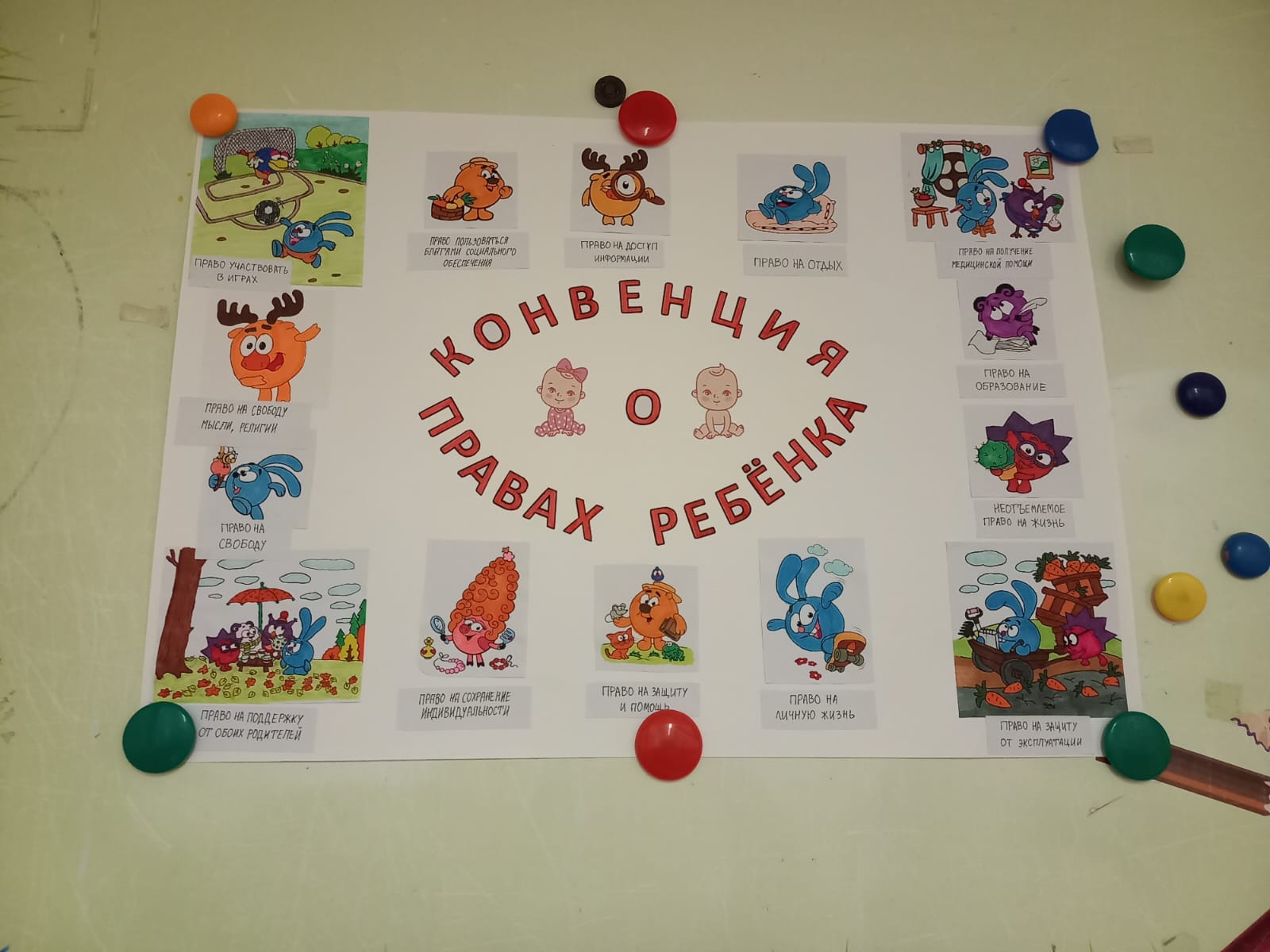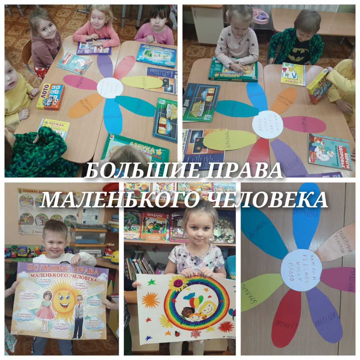 В преддверии праздника вся деятельность в МАДОУ «Детский сад № 53» была направлена на формирование основ правового сознания дошкольников, расширения кругозора детей и воспитания гражданского самосознания. В течении дня с детьми в ясельных группах были проведены беседы: «Как дружить без ссоры», «У каждого есть имя», а также дидактические игры: «Что такое хорошо и что такое плохо», «Не поделили игрушку». Во время проведения занятий воспитанниками младшего возраста была изучена тема: «Право на имя» с целью довести до сознания детей, что каждый человек имеет право на имя. Дети средней группы узнали о правах детей в сказке «Заюшкина избушка» и т д. С воспитанниками старшего возраста была проведены занятия по темам: «Право ребенка жить и воспитываться в семье», «Право ребенка на охрану здоровья».