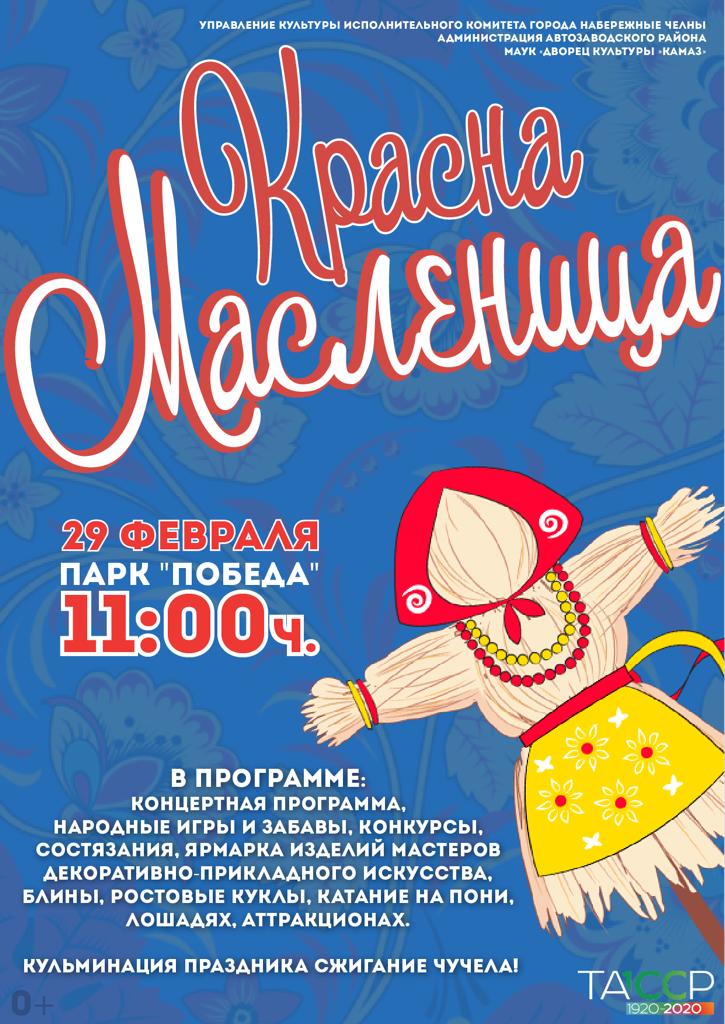 29 февраля 2020 года в 11.00 в парке культуры и отдыха «Победа» состоятся народные гуляния «Масленица». Афиша Масленица