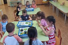 На основе предоставленных инструкций по сборке дети строили устройство, используя датчик наклона, который может отправить сообщение на базу.( коллективная работа).