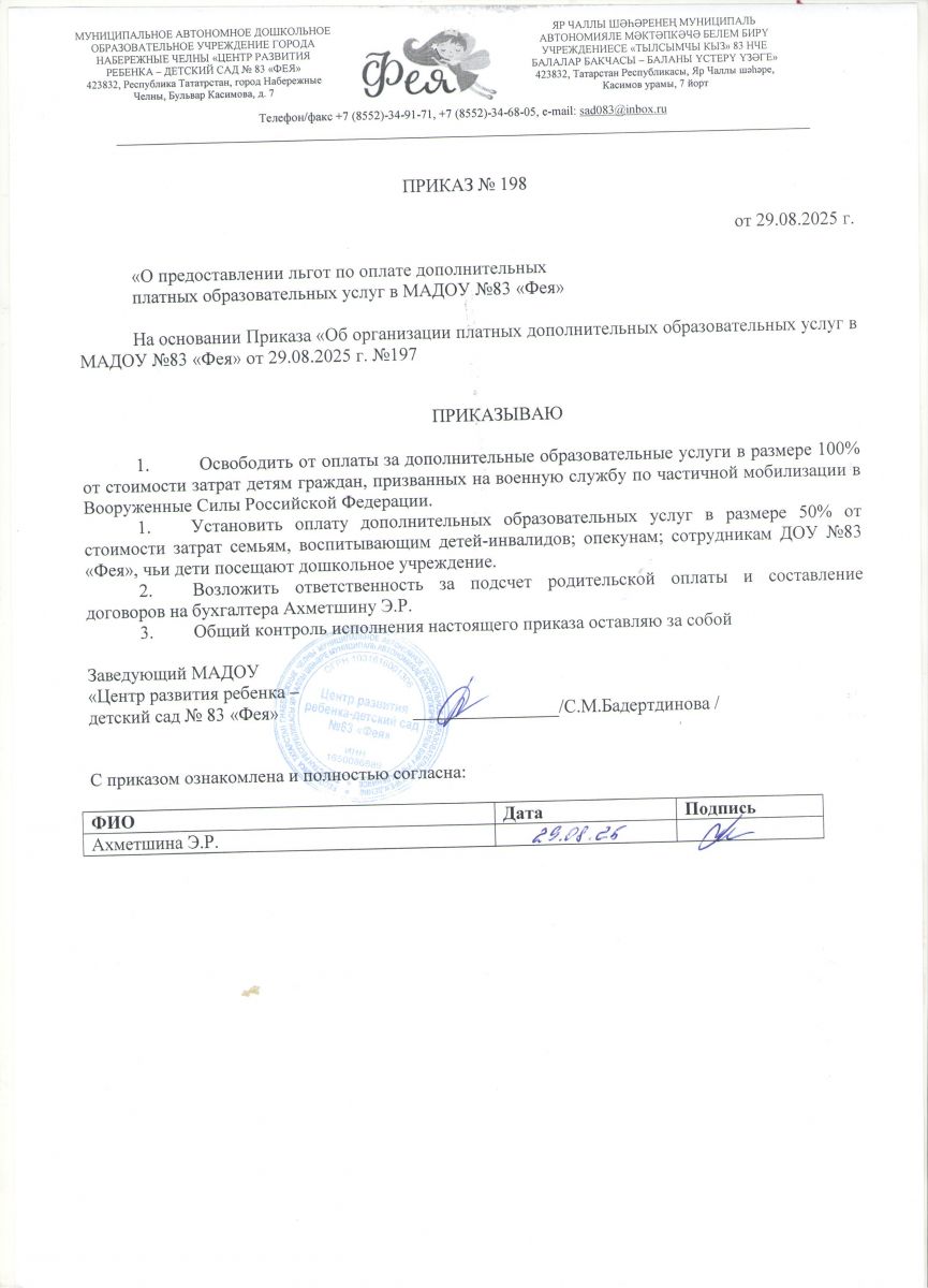 Муниципальное автономное дошкольное образовательное учреждение города Набережные Челны «Центр развития ребенка - детский сад №83 «Фея»/Яр Чаллы шәһәренең «Тылсымчы кыз» 83 нче балалар бакчасы - баланы үстерү үзәге» муниципаль автономияле мәктәпкәчә белем бирү учреждениесе»