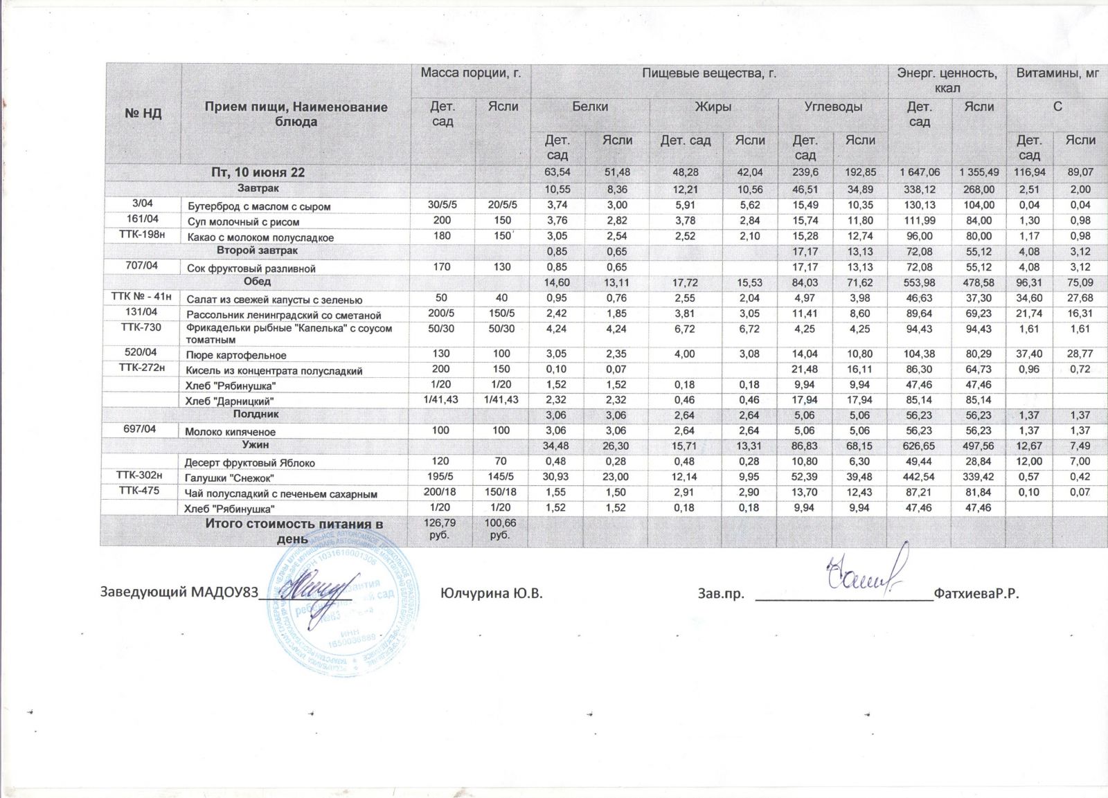 Меню на 10.06.2022г.