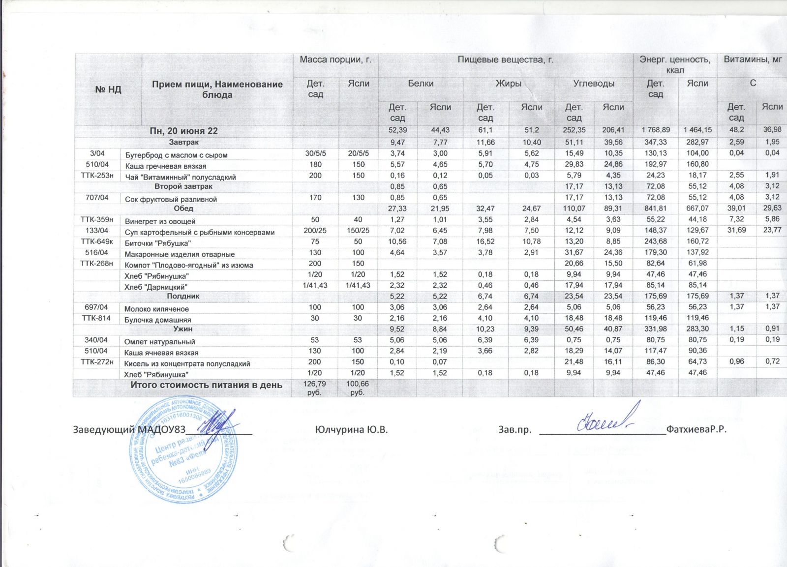 Меню на 20.06.2022г.