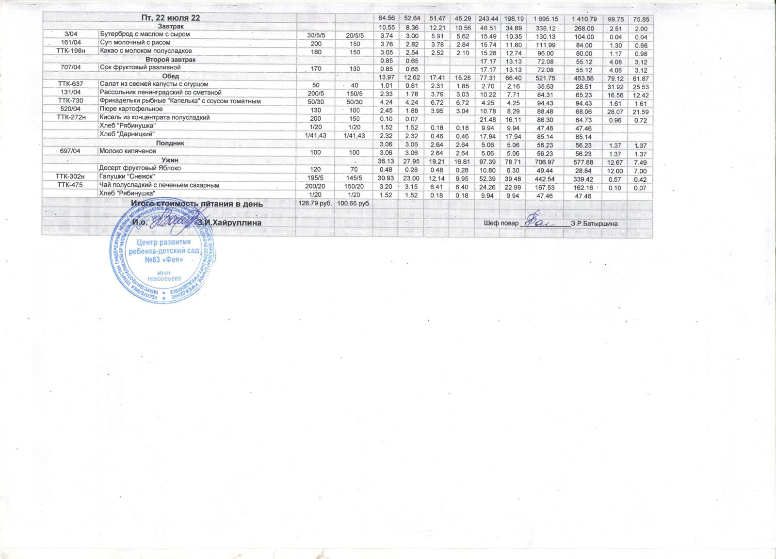 Меню на 22 июля