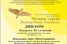 Поздравляем воспитанников подготовительной группы № 10, руководителей Хамидуллину Ф.З. и Хайруллину И.Ф. с победой. Они стали лауреатами 2 степени на Международном конкурсе "Чулман Тургае-Жаворонок Закамья" 2021.