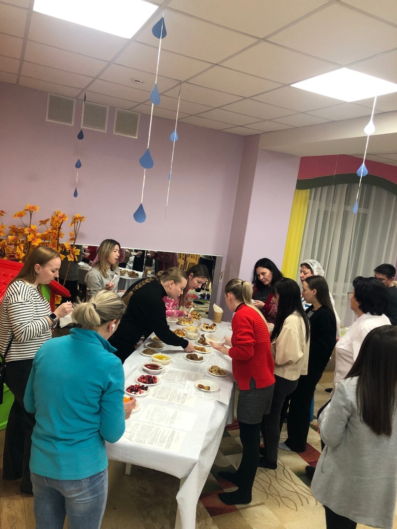 26 октября в нашем детском саду состоялось общее собрание для родителей с беседой о питании и дегустацией блюд. Главной задачей этой встречи было расширить представления родителей воспитанников о разнообразин блюд, а также наглядно продемонстрировать их необыкновенный вкус и оригинальность, эстетичность оформления.Вопрос организации питания один из волнующих вопросов для родителей, т .к. правильное питание - это здоровье наших детей. Проведение дегустации - это уникальная возможность оценить и попробовать качество блюд, приготовленных нашими поварами.