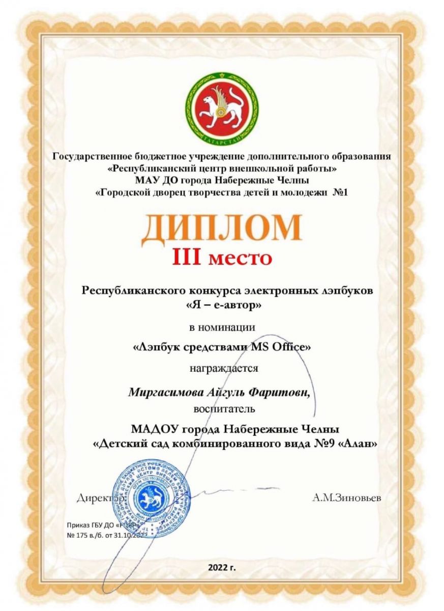 Муниципальное автономное дошкольное образовательное учреждение города Набережные Челны «Детский сад комбинированного вида №9 «Алан»