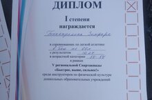 Поздравляем нашего инструктора по физической культуре - Гиниятуллину Зимфиру Нуриахметовну с 1-ым местом в соревнованиях по лёгкой атлетике ! Она показала лучший результат! А также заняла 2-ое место по прыжкам в длину! Поздравляем!
