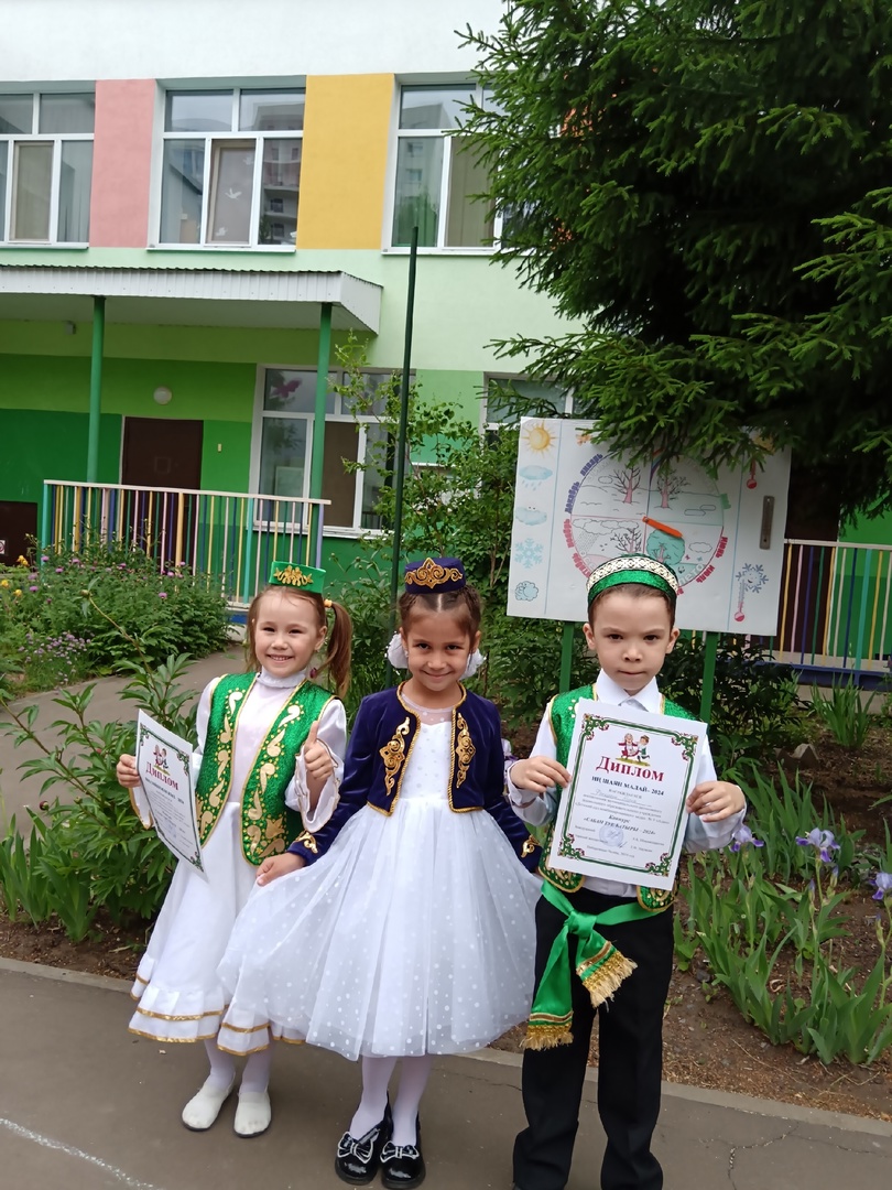 Сегодня в нашем саду состоялось праздничное мероприятие «Сабантуй». Праздник объединяет традиционную культуру, прежде всего музыкальную и танцевальную, способствует укреплению духовности и сохранению семейных ценностей. Воспитаники нашего сада приняли участие в традиционных праздничных играх и конкурсах, с каждой группы были выдвинуты кандидаты на звание "Сабантуй гузэле" и "Сабантуй батыры". Каждый участник получил диплом в своей номинации