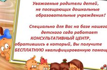 Уважаемые родители!На базе МАДОУ «Детский сад комбинированного вида № 9 «Алан» открыт бесплатный консультационный центр психолого-педагогической поддержки развития детей раннего возраста (от 0 до 3 лет), не посещающих дошкольное образовательное учреждение