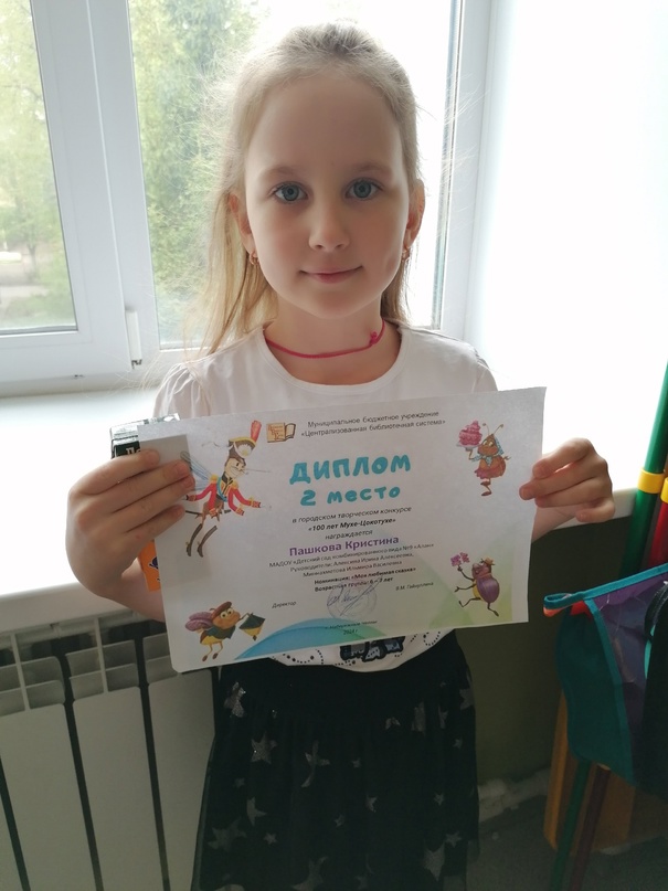 Поздравляем воспитанницу 6 группы Пашкову Кристину с почётным 2-ым местом в городском творческом конкурсе чтецов "100 лет Мухе-Цокотухе". Желаем творческих успехов