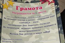 Сегодня в детском саду № 108 " Счастливое детство" состоялась военно-спортивная игра "ЗАРНИЦА-2024". Команда нашего сада, состоящая из воспитанников подготовительной группы №6, заняла почётное 3 место!Благодарим за подготовку детей инструктора по физической культуре Зимфиру Нуриахметовну.зарница(1).jpg