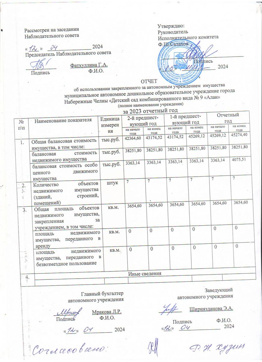 Отчет об использовании закрепленного за автономным учреждением имущества за 2023 год