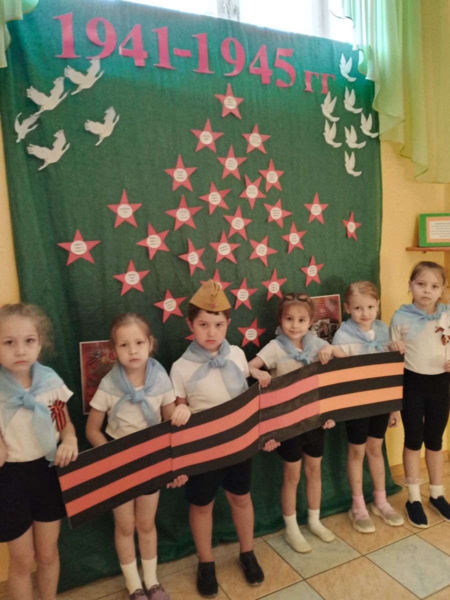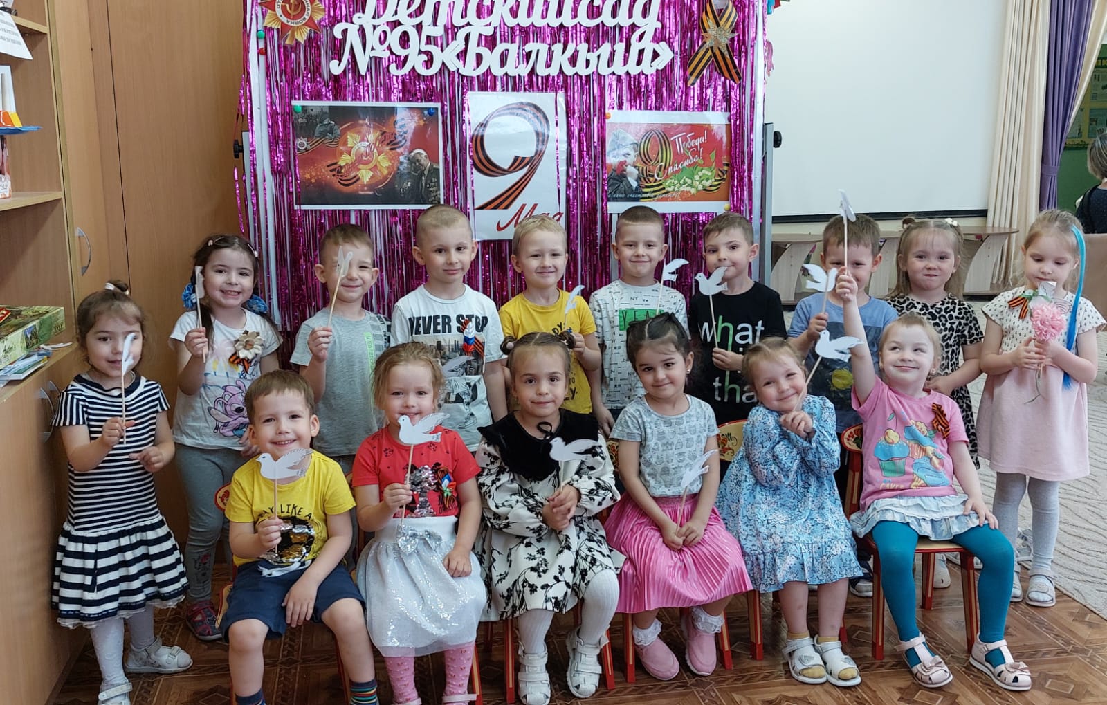 Балкышевцы стали активными участниками акции "Лента Победы", изготовив вместе с родителями Георгиевские ленты; акции "Окна Победы", "Свеча памяти", "Стена памяти", «Поздравь ветерана», в рамках которой воспитанники подготовили праздничные подарки и открытки для ветеранов и тружеников тыла 58, 59 и 60 комплексов.Фотозона Стена памяти Флешмоб Голубь мира Награждение победителей