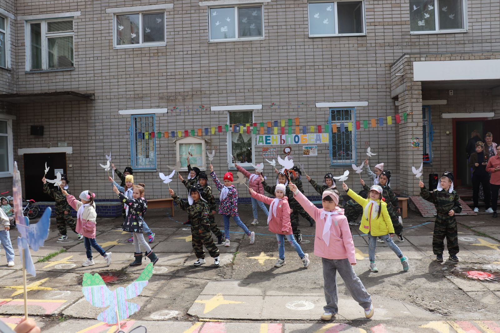 В детском саду "Балкыш" прошло праздничное мероприятие ко Дню Победы, способствующее развитию у детей эмоционально-чувственного восприятия и патриотизма. Прозвучали песни и инструментальные композиции военных лет в исполнении педагогов и воспитанников Балкыш , кульминацией праздника стал флешмоб "Голубь мира".