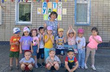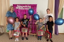 Детям были подарены папки с канцелярскими товарами к школе и яркие шарики!