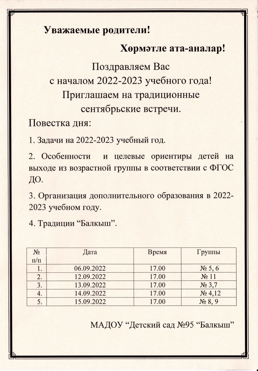 В Балкыш начались родительские собрания. Ознакомиться с графиком собраний можно здесь: График родительских собраний