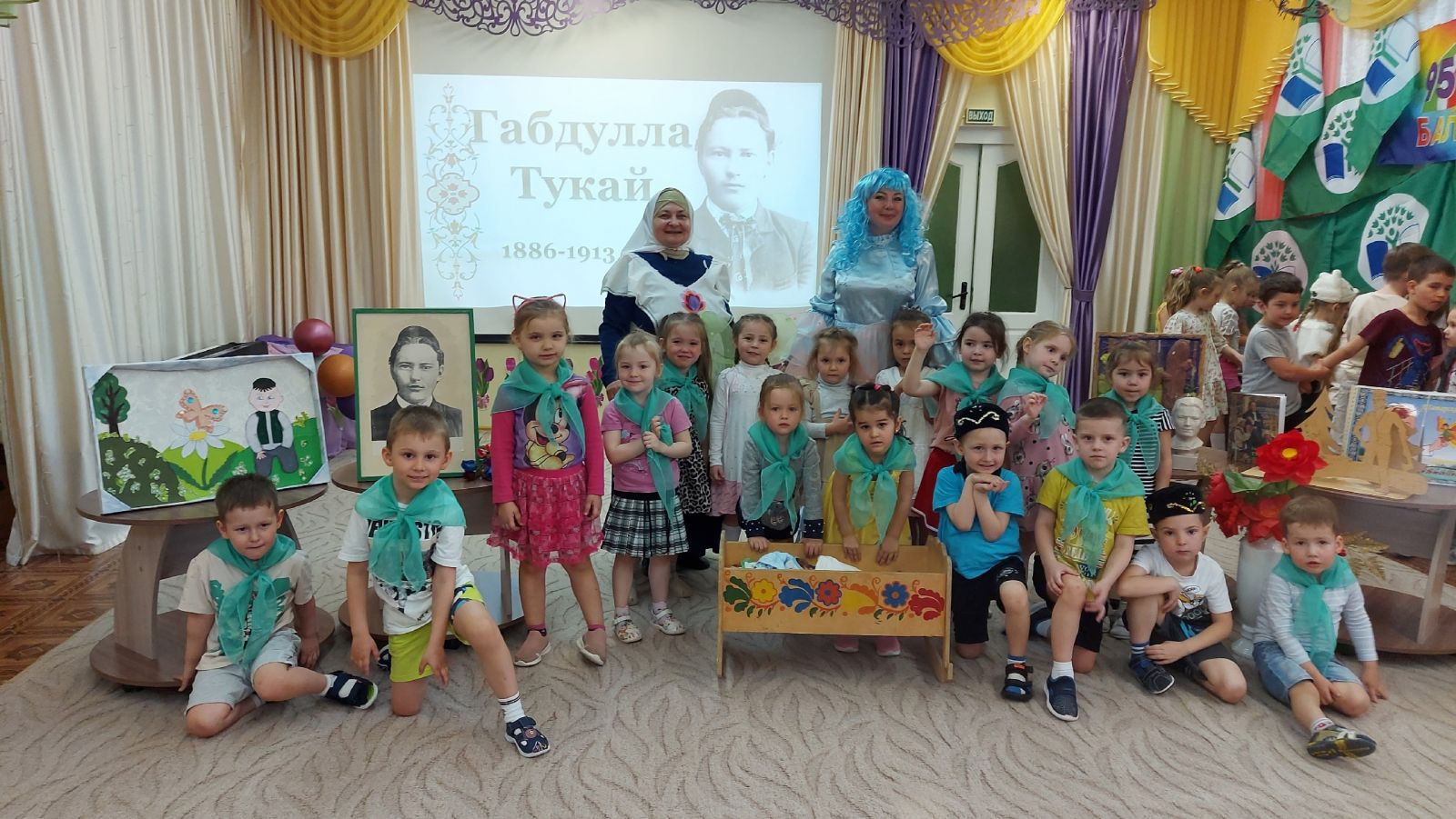 В Балкыш прошел великолепный праздник "Тукай оныклары". Гости - специалисты библиотеки-филиала 24 ЦБС познакомили балкышат с интересными эпизодами из жизни знаменитого поэта. Привезли с собой целую выставку книг. Дети приняли участие в конкурсе чтецов, играли с персонажами ШУРАЛЕ, СУ АНАСЫ, читали и рассматривали книги, поучаствовали во флешмобе, посмотрели мультфильмы. Балкышата- юные эколята отметили, что Габдулла Тукай - самый настоящий эколог, призывающий в своих произведениях беречь, любить и защищать природу! Общее фото