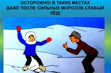 • крайне опасен лед под снегом и сугробами, а также у берега.
