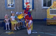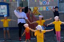 На центральной площади Балкыш педагогами совместно с детьми, воспитанниками группы-студии "Кумир" было поставлено театрализованное представление сказки "Колосок". Дети весело поиграли с главным героем - Петушком.