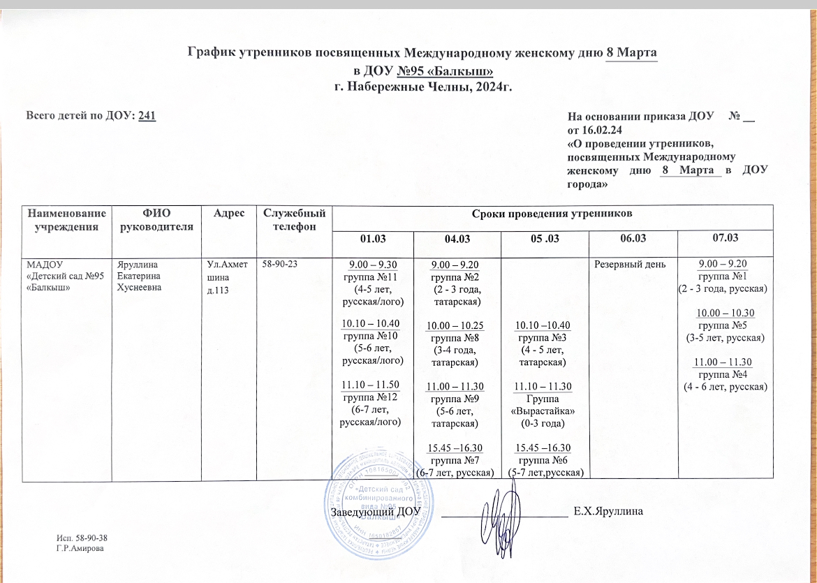 График весенних утренников посвященных Международному женскому дню 8 марта в Балкыш.
