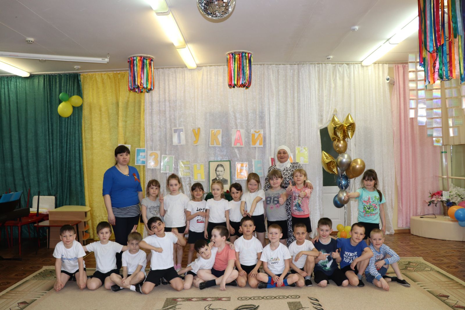 Опубликовано: 26.04.2018В Балкыш провели мероприятие, посвященное Дню рождения великого поэта Габдуллы Тукая. Чтение произведений, игры и просмотр мультфильмов очень порадовало всех воспитанников и педагогов детского сада. Также состоялось чествование победителей конкурса чтецов и рисунков "Тукай безнең белән".