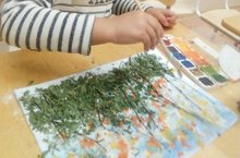 Первые работы кружка "Осенний лес" (ветки.акварель.сухие листья)