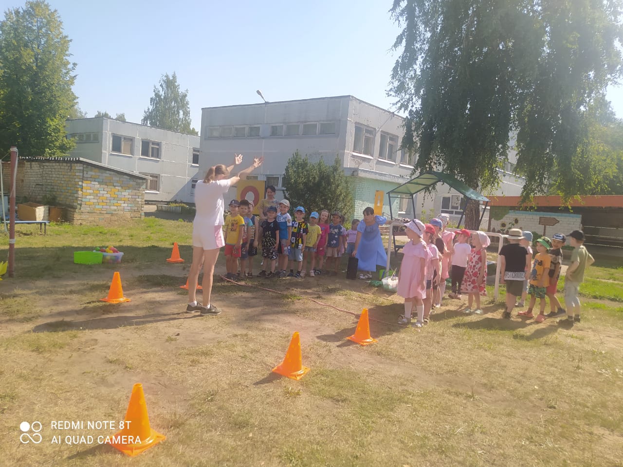 На улице стоит тёплая погода, и наши педагоги проводят занятия не только в детском саду, но и на прогулочных участках. Сегодня в 9 группе прошла физкультура на свежем воздухе. Ребята тренировались в прыжках на двух ногах, в подтягивании на руках лежа на скамейке, беге огибая кубики и подлезании.