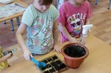 Группы №1, №8 и №9 принимают участие в выращивании рассады. Дети совместно со взрослыми сажают семена, удобряют и пикируют рассаду, поливают первые ростки. В группах организованны огород на окне, в котором ребята выращивают не только рассаду для огорода, но и цветы для будущих цветников.