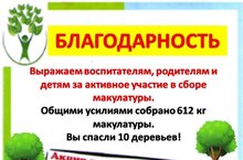 В марте в ДОУ прошел сбор макулатуры. совместными усилиями сотрудников, родителей и детей было собрано 612 кг. макулатуры. Выражаем благодарнсот всем участникам акции!